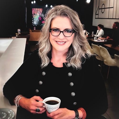 Lori’s life took a drastic turn in 2015, when she lost her husband to glioblastoma. A widow at 42 with two young children, writing and art became an important part of her journey in processing trauma and grief. In 2017, she remarried Chef Robert Black. As part of the blending of their families, Robert took over the garage to create his professional woodshop and built Lori a small art studio in their backyard where she could spend more time creating. They also purchased Evoke in Sept. 2019 in downtown Edmond, Okla.