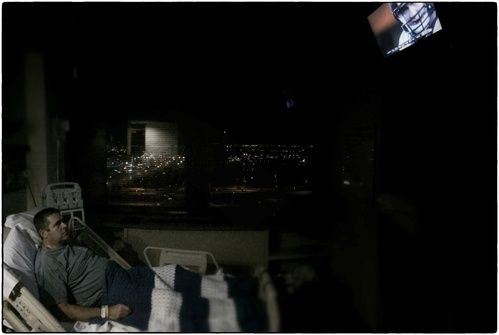 Mike quietly cheering on the Denver Broncos while in the hospital.