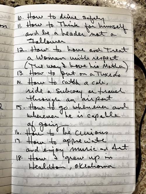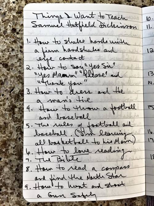 Sam and I look at this list a lot. He loves that he knows what his dad wants for him - and we've made a promise to make sure he learns all these things the way Michael intended to teach him. We stumbled through learning to tie a man's tie for the funeral and Sam is working on the firm handshake and eye contact. We have throwing a baseball down, we play basketball and throwing a football will happen this fall as a start.